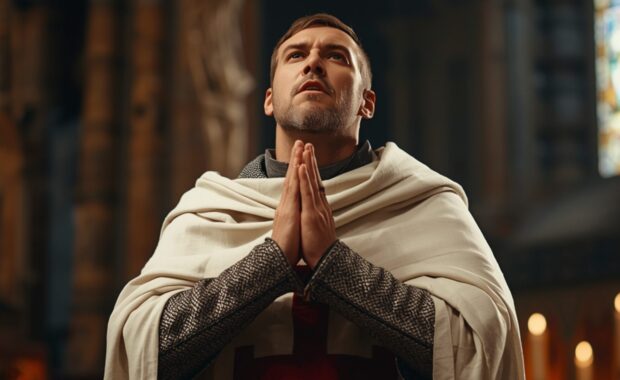 La fe en Dios y en la protección divina era el fundamento de la vida de un templario. Este pilar representaba la devoción religiosa y el compromiso con la Iglesia, así como la misión de proteger a los peregrinos y los lugares sagrados.